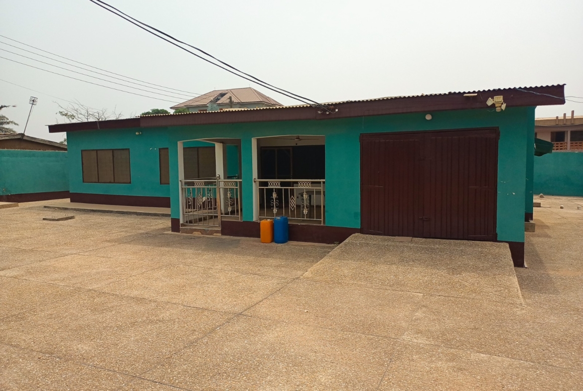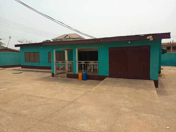 The subject property is a four-bedroom house, it comprises of three-Bedrooms; one ensuite, three sharing a washroom, a master bedroom, a living area, a dining area, a kitchen, a store room, a garage, a lobby, porch/front terrace, storage room and visitor’s washroom. A septic tank is also sited within the property to receive effluent matter from the building and a storage tank is sited on the ground to supplement the flow of water into the building. The subject property is walled on its four corners and fitted with a double and a single leaf metal gate at its frontage for vehicular passage and a pedestrian gate providing access to the compound. The compound is finished in terrazzo. It sit on a 0.21 acre land. *Market Value is Ghc 1,400,000 and slightly negotiable.*